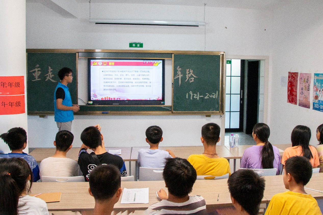 为了让党史学习教育走进留守儿童课堂,7月15日下午,ML米兰体育·(国际)官方网站ML米兰体育·(国际)官方网站暑期“三下乡”社会实践团队带来一堂以“学党史、强信念”为主题的党史宣讲课。志愿者龙子尧邀请夏昭炎教授为孩子们讲述党史,引导他们走近党、热爱党、拥护党。