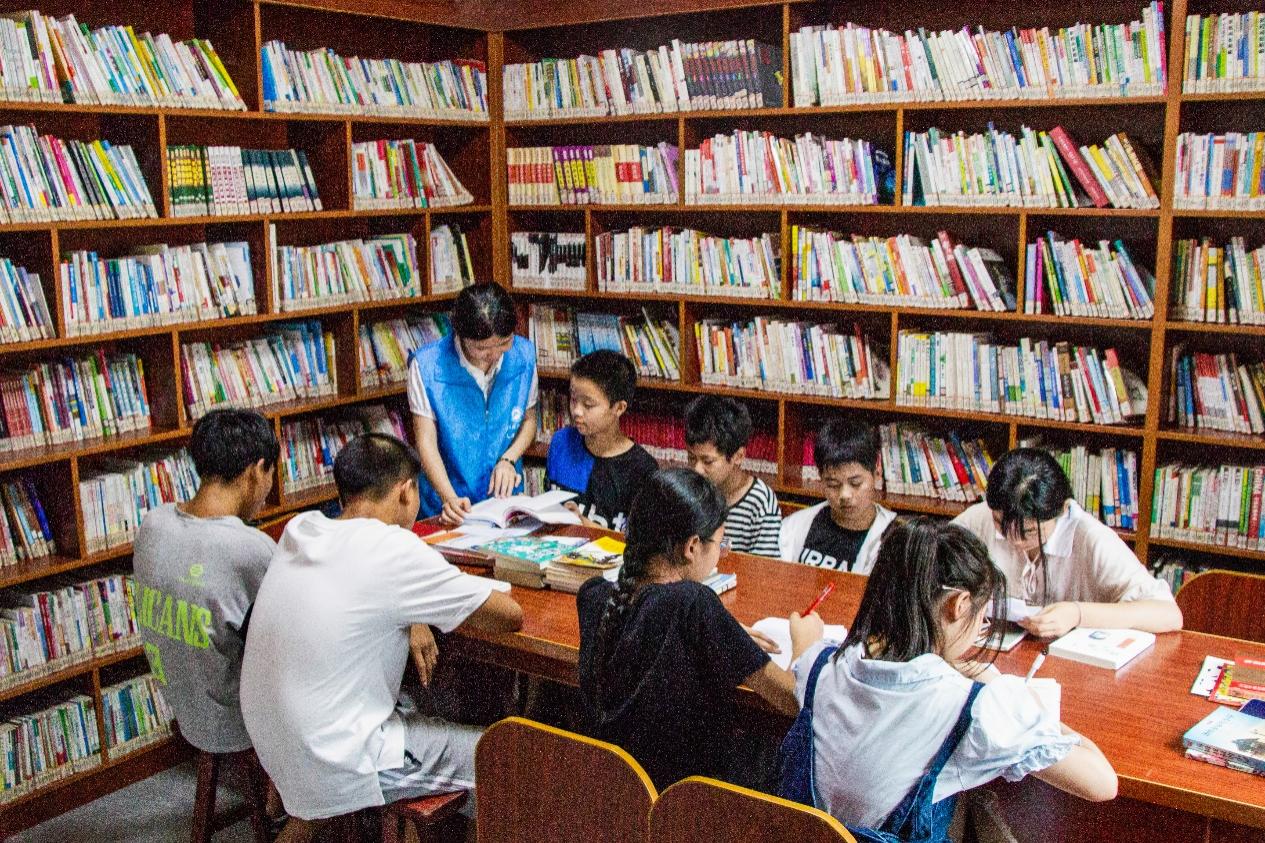 坐落在少儿假期学校附近的农家书屋在小雨中,更显别致。八年级同学们与支教志愿者刘楚怡围坐于书桌旁,杨莲金老师悄悄搬了一把凳子坐在角落,认真听着支教志愿者与同学们的发言,并鼓励每位同学勇敢地表达自己的观点。同学们从写作背景、人物形象、拓展想象三个方面谈及对《朝花夕拾》的理解。刘楚怡对同学们阅读这篇文章遇到的问题进行解答,并给他们分享了读书的三个方法——学会找到一本书的背景、学会找到一本书的主题、学会与一本书建立联系。