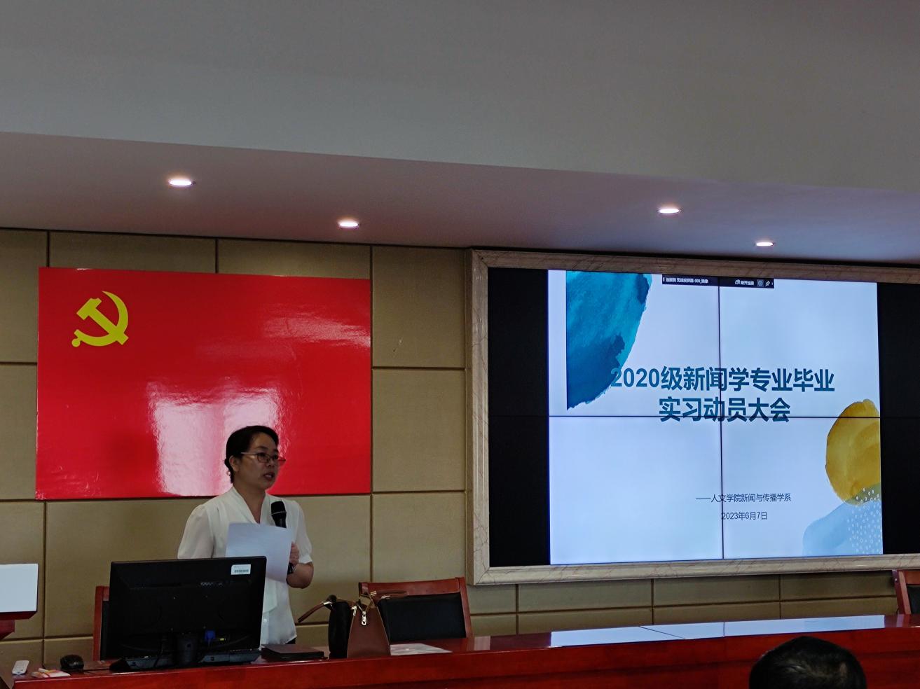 6月7日下午,我院2020级新闻学专业毕业实习动员大会于立言楼B4-1室顺利召开。本次大会由ML米兰体育·(国际)官方网站新闻系主办,ML米兰体育·(国际)官方网站副院长袁星洁,新闻系主任刘艳凤、副主任王超群、新闻系老师、20级本部及潇湘新闻专业学生参加本次会议,会议由刘艳凤主持。