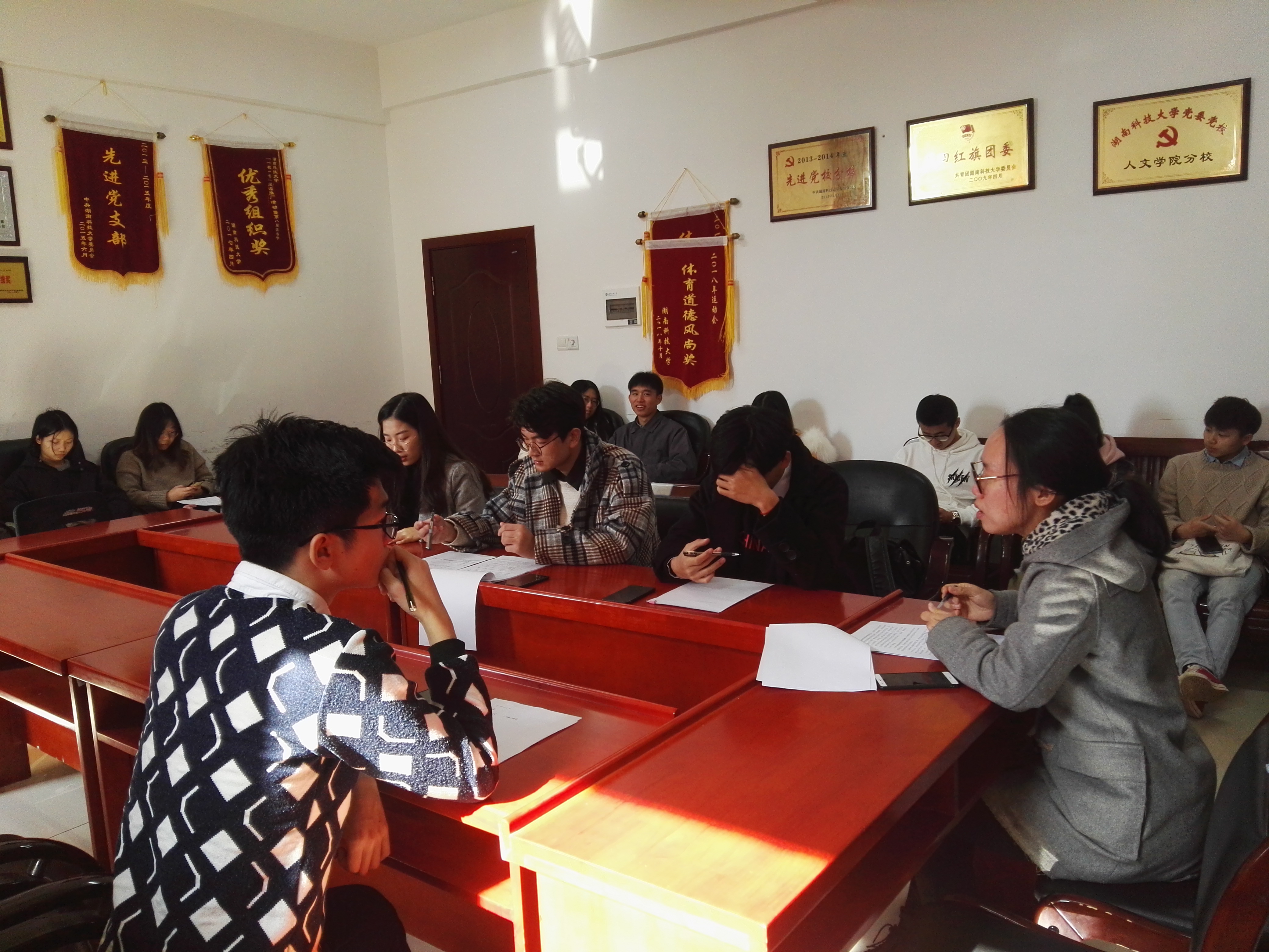 室外寒风刺骨,室内暖意融融。12月18日中午,我院主席团、部长工作例会在立言楼b410召开。学工办王嘉敏老师出席并主持会议。