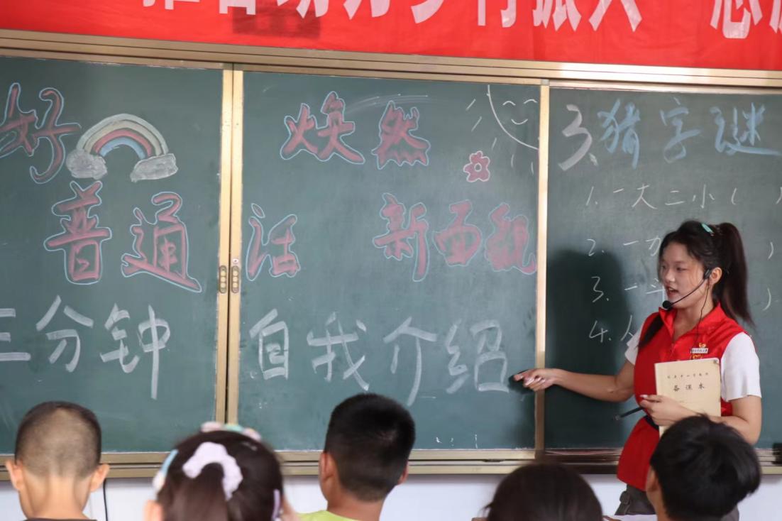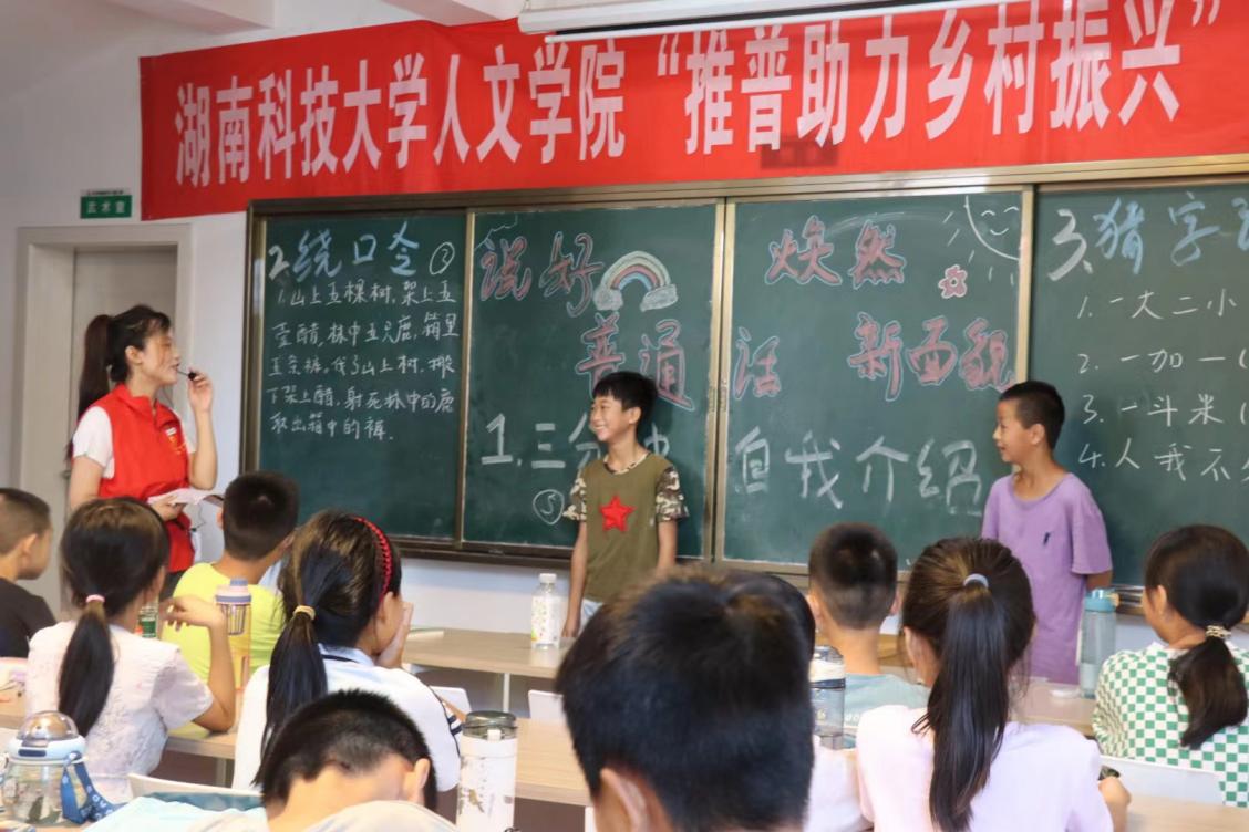 7月9日上午,株洲攸县石羊塘镇儿童之家传来了一阵又一阵的鼓掌声,四年级孩子们的欢笑声此起彼伏地传来。走进教室一看,是志愿者龙杨慧在教孩子们读绕口令。“发扬国风,从说中国话起;说中国话,从普通话开始。”为了圆满完成推普助力乡村振兴的志愿服务目标,在乡村大力推广普通话,传承优秀传统文化,为此ML米兰体育·(国际)官方网站ML米兰体育·(国际)官方网站“三下乡”实践团队在暑期学校展开三下乡特别课堂第三期:说好普通话,焕然新面貌。