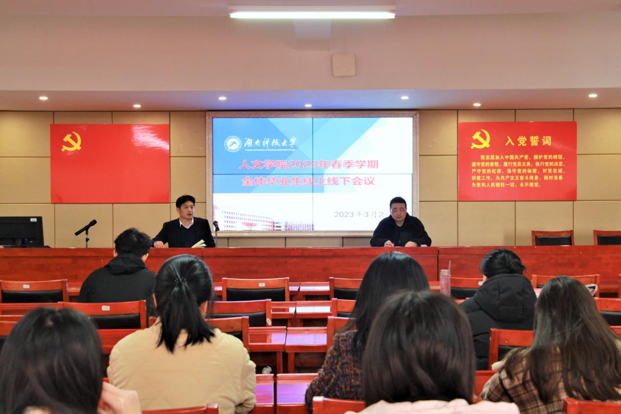 3月2日上午,为激励我院2019级毕业生积极参与高质量就业,我院于立言楼B4-1室召开2023年春季学期全体毕业生线上线下会议。我院党委副书记罗振军与会,会议由学工办主任李涛主持,19级毕业生通过线上线下相结合形式参会。
