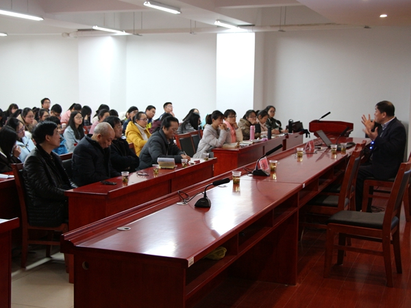 “我这次来不算做什么报告,只是陪大家聊聊天。”开场,许结教授谦虚地说道。何为经典?许结教授认为应从三大系统了解经典:知识系统、心态系统与思想系统。“尽信书则不如无书。”他认为在阅读我国传统文化经典时应当带着我们的生命去读古人的生命。老年或中年,得意或失意,晴或阴,不同情境下读经典会产生不同的人文情境。由此,许结教授为师生们阐述了阅读经典应当注意营造如下四大人文情境:一是道德情境。“道”是通往“德”的途径,“德”即人性,道德情境是阅读经典必须具备的情境。他引用《孝经》中的名句“百善孝为先”,说明孝是最基本的道德,并详细介绍了“孝养”“孝顺”“孝敬”三个层次的涵义。他希望同学们践行孝义,使之内化为道德的情怀。二是学术情境。许结说,学术情境即“求真”,绝对真理易识,相对真理难求,人生就是不断实践和印证相对真理,而从阅读经典中获知相对真理是一件快乐的事。他以朱熹的名言“问渠那得清如许,为有源头活水来”和孔子论智的名言鼓励同学们积极进取,求知求真,从“博与精”“渐与顿”“得与失”三个方面理解和营造学术情境。三是艺术情境。他以宗白华的“化实景而为虚境,创形象以为象征”诠释艺术的涵义。他认为中国艺术的最高境界是“妙不可言”,并列举了古代诗词中以“杨柳”象征“别情”来营造凄婉精美的情境,以及古代参加科举考试的考生以美人化妆象征“登第”的例子。他说,要学会品味古人的风雅和趣味,把经典读“活”,让经典生动起来。四是自然情境。即热爱自然、顺其自然、达到天人合一的境界。他通过介绍西方的进化论和新基督教的霸权教义、“庄周梦蝶”和“濠梁之辩”,呼吁大家亲近自然、珍惜自然。他说,人生需要理性批判,也需要趣味批判,趣味的批判源于自然,大家要保持“清风明月”的情怀,不要对自然视而不见。许结教授总结说,经典阅读四大人文情境中,道德情境在于敬,学术情境在于诚,艺术情境在于趣,自然情境在于和。