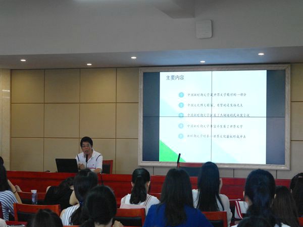 69日下午,中南大学聂茂教授受我院邀请,于文科楼B4-1开展了以“世界视野下的中国新时期文学”为主题的学术讲座。我院副院长李胜清主持此次讲座,肖祥彪、罗渊、吴投文、胡铁强、梁晓娟、刘晔等老师及16级汉语言文学专业的所有同学到场聆听。