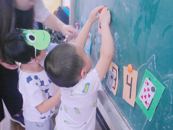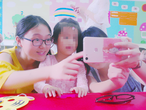 特校的负责人刘老师维持好纪律后,志愿者们便进入班级中,和孩子们亲密地打起招呼来。志愿者杨玉婷负责的是刘梓杰小朋友,虽然是第一次见面,但刘梓杰却并不胆怯,很快和杨玉婷熟悉了起来。游戏开始之前,志愿者们亲切地搂着小朋友们,与他们一起拍照。这次志愿活动,志愿者们带来了四个游戏,分别是猜猜这是什么、石头剪刀布、贴鼻子和辨认卡片。志愿者们一对一地带着孩子们做游戏,领取奖品。刘梓杰小朋友在游戏中拿到了一个老虎面具,他非常开心地戴上,并向志愿者杨玉婷展示自己得到的面具。