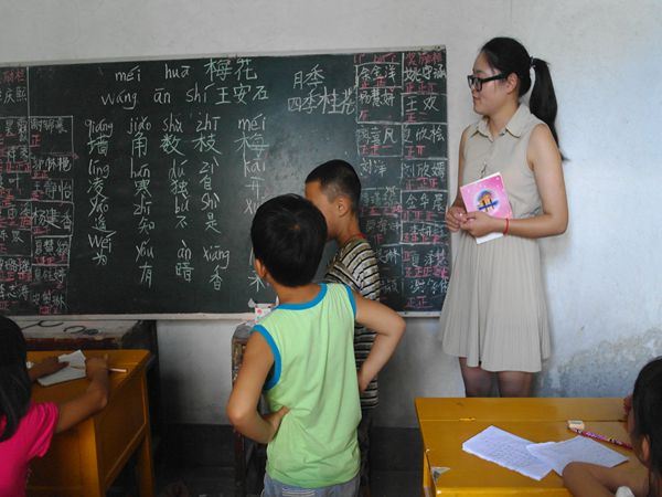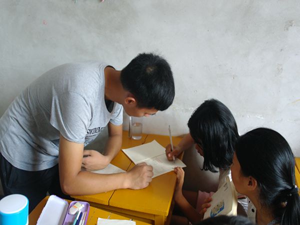 719日清晨,看见志愿者到达学校,正在教室外玩耍的孩子们跑过来紧紧抱住志愿者,仰着脸,露出洁白的牙齿,微笑地望着志愿者。志愿者拉着他们的手慢慢走进教室:“我们开始上课了!
