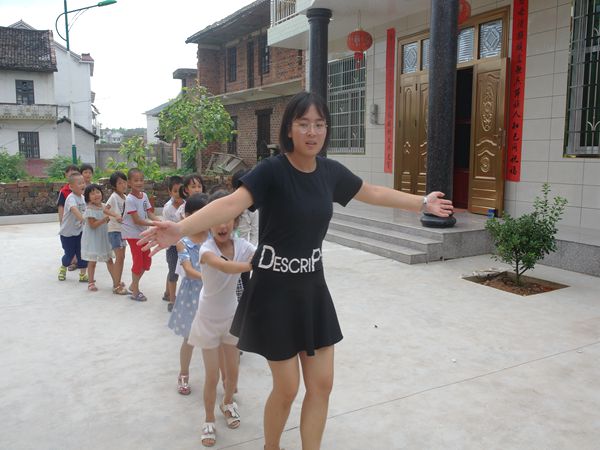 下课活动时间,志愿者和孩子们在空地上玩起了老鹰抓小鸡、木头人等游戏。志愿者扮演老鹰和母鸡,孩子们则扮演小鸡,孩子们一个接一个地揪住衣边,在空地上奔跑着、嬉笑着、追逐着,孩子们明朗的笑声感染到了树叶里荫凉的鸟儿,婉转的鸟啼声从树梢里幽幽飘荡出来,恍若在为这个梦想盛开的立夏放声歌唱。
