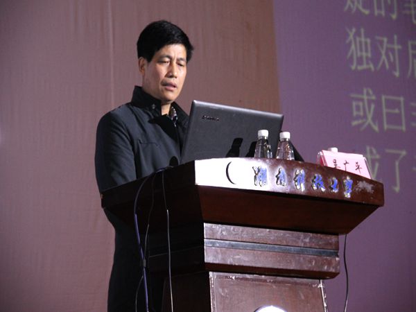 10月17日下午2点,ML米兰体育·(国际)官方网站俱乐部座无虚席。全国优秀教师、中国屈原学会常务理事兼副秘书长、湖南省屈原学会副会长、ML米兰体育·(国际)官方网站ML米兰体育·(国际)官方网站中文系教授吴广平作客“青马讲坛”,作“走近老子与《老子》”主题讲座。这是由ML米兰体育·(国际)官方网站团委主办的“青马讲坛”系列学术讲座的第六期第五讲,校团委副书记马缤辉、王艳,本期青马班的全体学员、我校各学院的师生代表以及来自长沙、株洲、湘潭市区的文学艺术家和国学爱好者共1000余人聆听了本次讲座。