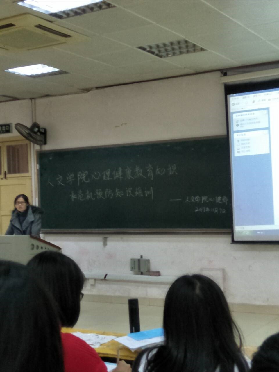 为推动素质教育的落实、促进学生的心理健康和全面发展,助力校园的和谐,11月7日下午,我院于十教附一102开展新生心理健康教育知识培训,参加此次培训的有我院心理辅导老师赵晗冰、院心理健康部全体成员以及17级全体宿舍长。