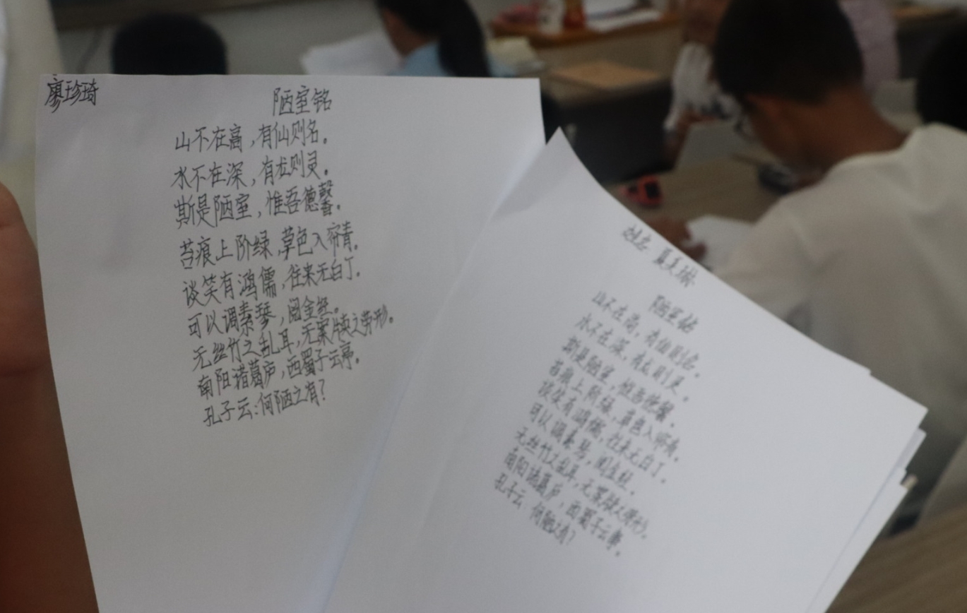 以翰墨书香养浩然之气,载诗文书法传文明经典。据悉,为照顾年级与年级之间的教学差异,志愿者们灵活调整书写内容,其中一、二年级书写内容为拼音,三到八年级书写内容为古诗词。语文、英语写字比赛是高桥少儿假期学校每年的特色活动,能够培养学生写规范字的好习惯,体悟文字背后的智慧蕴意。(文/李易 图/李易)