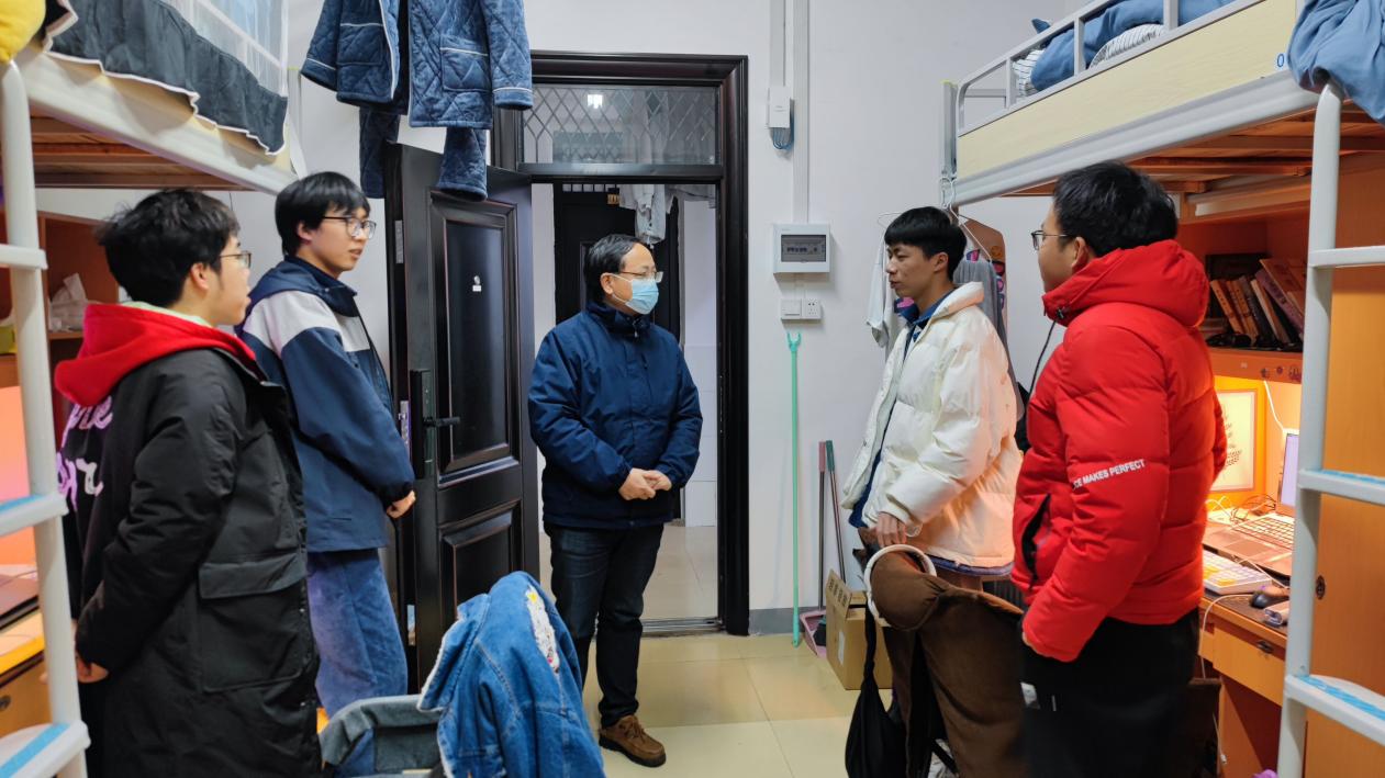 2月12日下午,为进一步了解学生的学习生活状态及宿舍卫生环境,我院党委书记曾志东带领学院全体领导及辅导员前往学生宿舍关心慰问,与同学们面对面交流。