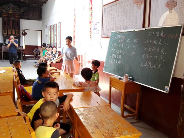 清晨,学生们陆陆续续的到达乡贤馆。老师早上好,老师早上好!向志愿者老师们问好的声音此起彼伏,一个个小天使笑的十分开心,对于他们来说上课并不是一件苦恼的事情,相反是假期最值得期待的事情。八点半,上课的哨声准时吹响。同学们快进教室,上课啦……”志愿者林点一边吹哨,一边呼喊同学们进教室。作为团队的领头羊,林点身兼数职,既要充当打铃人,准时吹响哨声。又是老师,要教幼儿园的小朋友们数学。