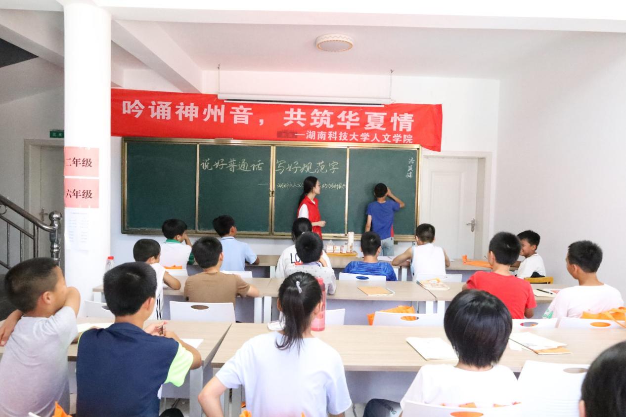 为深入贯彻习近平总书记关于教育的重要论述,加大农村地区国家通用语言文字的力度,践行志愿服务精神,发挥专业优势,助力乡村振兴。7月8日,ML米兰体育·(国际)官方网站ML米兰体育·(国际)官方网站暑期“三下乡”社会实践团队在株洲市攸县石羊塘镇高桥少儿假期学校开展主题为“吟诵神州音 共筑华夏情”的推普活动,为乡村振兴,贡献语言力量。