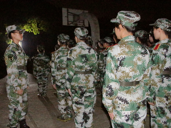 在助班的带领下,新生们早早地来到训练场地整理好队伍,等待教官的到来。晚上7时,各排教官准时来到训练场地。集中完毕后,连长王阳首先作了自我介绍:“我姓王,单名阳,你们看到太阳的时候就是训练的时候。”他指出近期新生中存在的自由散漫等问题并提出五点要求:时刻注意军容军纪,请假时严格遵循程序,弘扬集体主义精神,能够吃苦耐劳,注重礼貌礼节。“当你们穿上军装,你们就不再是学生,而且中华人民共和国的一名预备军人,要用军队的要求来严格要求自己!”,王阳简述了自身在部队中学习到的精神,并以此激励新生不畏艰难,“军队的精神就是,没有困难克服不了,没有敌人战胜不了,没有任务完成不了!”在简单提问以确保新生熟记纪律后,王阳再次强调了请假问题,并补充说明军训不是为了折腾学生,而是为了考验受训者的毅力和耐心,锤炼出军人般的意志,最终将军训中学习到的品质落实到生活中。