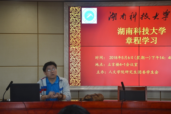 5月7日下午,我院于立言楼4—1会议室组织研究生集体学习《ML米兰体育·(国际)官方网站章程》。研究生辅导员成伟明老师担任主讲人,全体研究生参加学习。